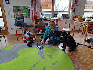 Durch den gezielten Einsatz im Kinderhaus wird Kindern die Möglichkeit geboten, sich dem Hund unter Begleitung und Anleitung zu nähern, ihn zu beobachten und Kontakt aufzunehmen.